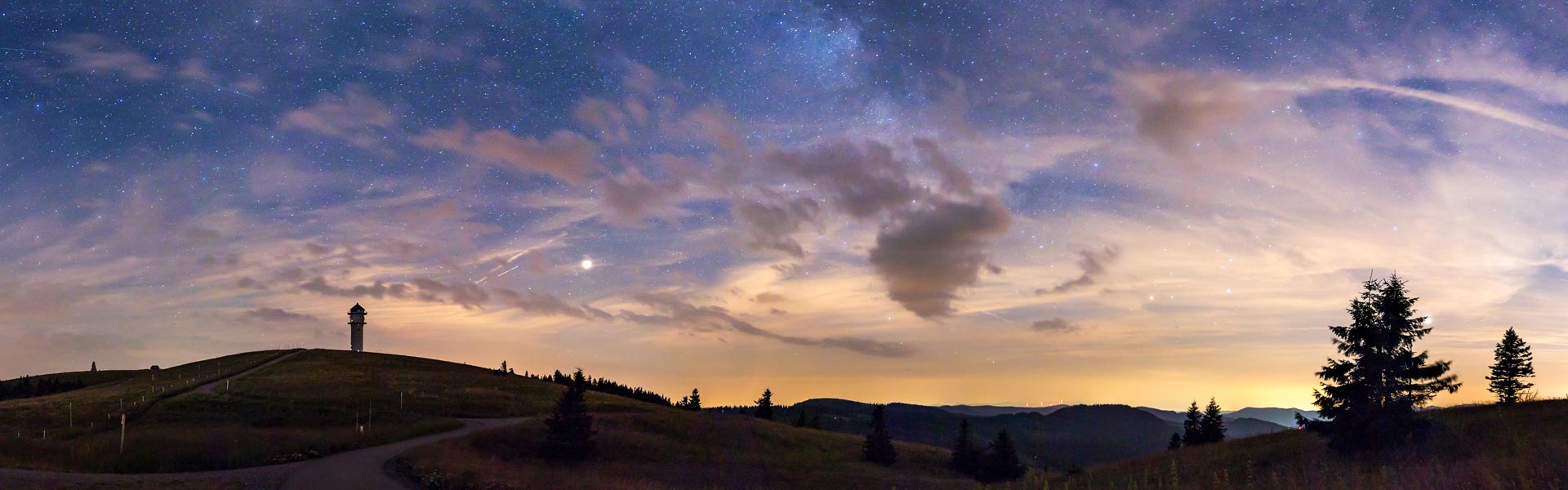 je höher Sie sich positionieren, desto besser. Nicht nur, weil dort meistens weniger künstliches Licht stört. Sondern auch, damit Ihnen möglichst wenig Hindernisse die Sicht versperren. Gerade beim Fotografieren der Milchstraße ist das von Vorteil, weil ihr Zentrum in unseren Breiten dicht am Horizont steht.