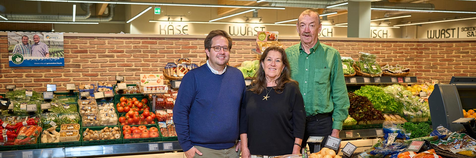 Huck hat’s! Dieser Werbespruch begleitet die Kaufmannsfamilie Huck seit 1888. Damals eröffnete Ludwig Huck einen wohnstubengroßen Lebensmittelladen in seinem Wohnhaus in Durmersheim. Als einer der Ersten trat er dem Vorläufer der heutigen Genossenschaft EDEKA Südwest bei. Inzwischen ist bereits die vierte Generation in der Geschäftsführung aktiv: Ruben Fütterer (links) betreibt zusammen mit seiner Mutter Karin (Mitte) drei EDEKA-Märkte, ein 24/7-Markt ist in Planung. Ehemann Harald Seider (rechts) hat sich 2019 aus dem Tagesgeschäft zurückgezogen, steht als Inhaber der EDEKA-Märkte aber weiterhin beratend zur Seite.