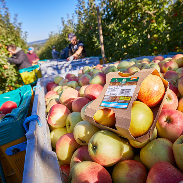 Seit 2018 gibt es Äpfel von Demeter-Betrieben unter der Regionalmarke „Unsere Heimat – echt & gut“ in vielen EDEKA-Märkten.