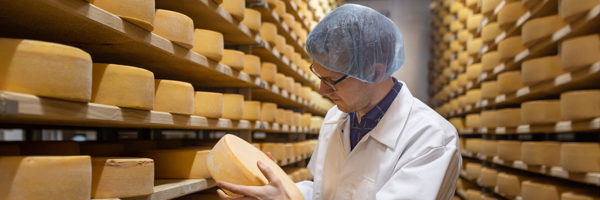 In der Käserei angekommen, wird die Milch schnellstmöglich verarbeitet. Durch die Zugabe von Lab und Bakterienkulturen verdickt sich die Milch nicht nur – sie erhält außerdem auch ihren besonderen Geschmack.