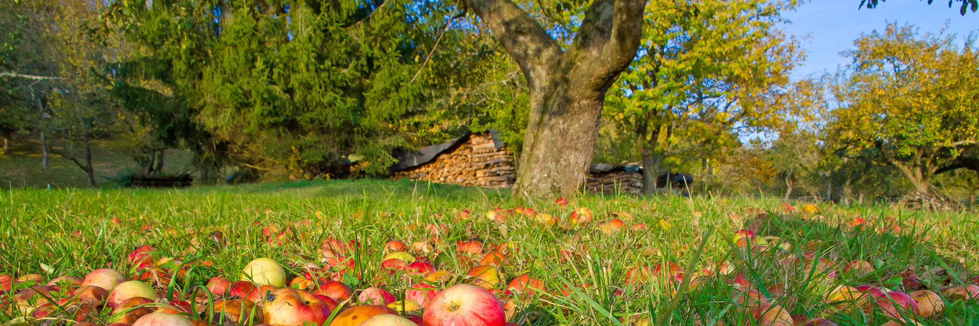 Mitte September bis Mitte November ist die Haupternte für die alten Apfel- und Birnensorten, die für den WiesenObst-Cider verwendet werden. Viele WiesenObst-Sorten zeichnen sich durch ihre besonderen Inhaltsstoffe aus, denn bereits vor über 200 Jahren wurden sie angepflanzt, um daraus Vergorenes herzustellen. Bereits 1854 wurde die Herstellung von Cider in der Region um Schlat beschrieben – aus sauren Apfelsorten und den raren herb-süßen Weinbirnen, die diesem Cider einen ganz angenehm eigenständigen Charakter geben.