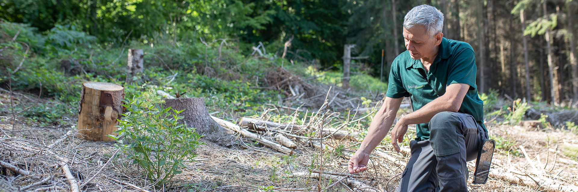 Förster Ekkehard Matter ist für rund 1300 Hektar Waldfläche verantwortlich. Eine anspruchsvolle Aufgabe, die neben einer langfristigen Planung auch direkte Maßnahmen umfasst. Im Ernstfall heißt es: Bäume fällen und abtransportieren lassen. An den gerodeten Flächen können dann neue Setzlinge gepflanzt werden. Auf diese Weise wird die natürliche Erneuerung des Waldes unterstützt. Und das ist notwendig. Denn lange anhaltende Dürreperioden und Hitzerekorde hinterlassen ihre Spuren. Der sogenannte „Trockenstress“ macht Bäume anfällig für Bedrohungen – wie z.B. durch den Borkenkäfer. Mehr über die Arbeit von Ekkehard Matter und die damit verbundenen Herausforderungen verrät der Förster im Interview. Zudem erklärt er, woran man einen Borkenkäfer-Befall erkennen kann und wie er im Ernstfall damit umgeht.