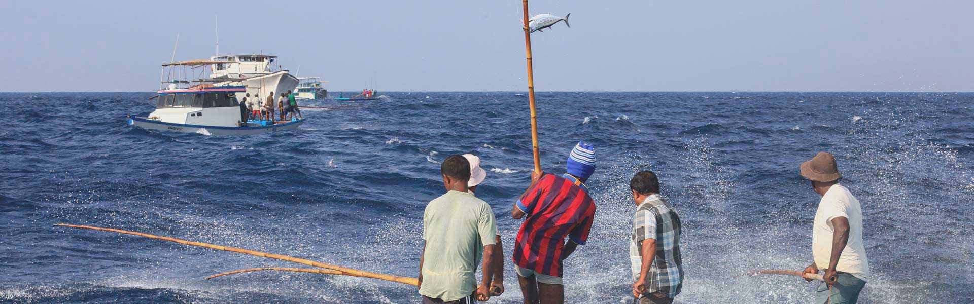 Thunfisch und sonst nichts. Morgens fahren die Fischer auf kleinen bis mittelgroßen Booten hinaus auf den Indischen Ozean. Abends sind sie daheim bei ihren Familien. Weit draußen suchen die Männer nach den Durchzugsrouten der Bonito-Schwärme, einer Thunfisch-Art. Als Köder werden Sardinen oder Sardellen verwendet. Kaum ist die Angel ausgeworfen, kommt Spannung ins Holz und der Angler hat einen Skipjack, auch Bonito genannt, am Haken. Kurz drauf beißt der nächste an, einen Moment später wieder einer. Sollte doch mal ungewollt ein Rochen oder Hai am Haken hängen, werden die Tiere unbeschadet zurück ins Meer gesetzt.