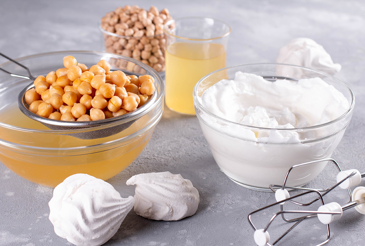 Aquafaba ist das Kochwasser von Kichererbsen und anderen Hülsenfrüchten. Es hat erstaunliche Eigenschaften: Aufgeschlagen bildet es einen stabilen Schaum, ähnlich wie Eischnee. In der veganen Küche wird es für Baiser, Mousse, Macarons oder als Bindemittel in Backwaren verwendet.